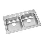 Dayton Stainless Steel Kitchen Sink, Top Mount, Double Bowl, Elite Satin, 20 GA, 4 Hole, 33" L x 22" W x 8-1/16" D